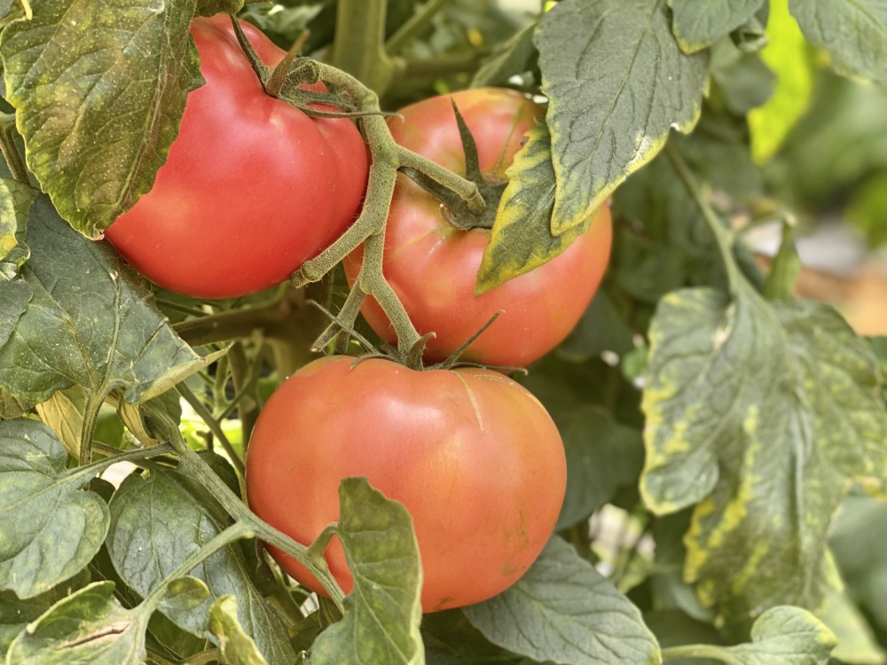 图为枝头上的毛粉西红柿。