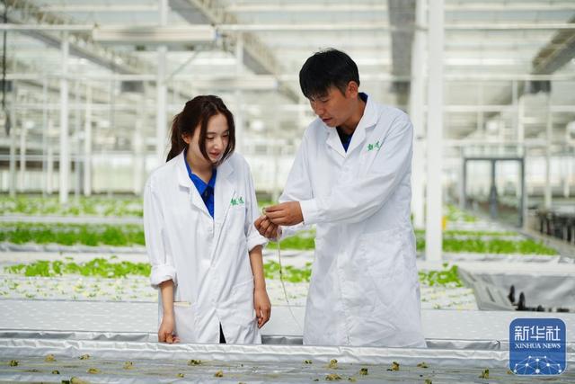 在新疆阿克苏地区库车市甬库同心村智慧农业植物工厂,工作人员在检查农作物生长情况。